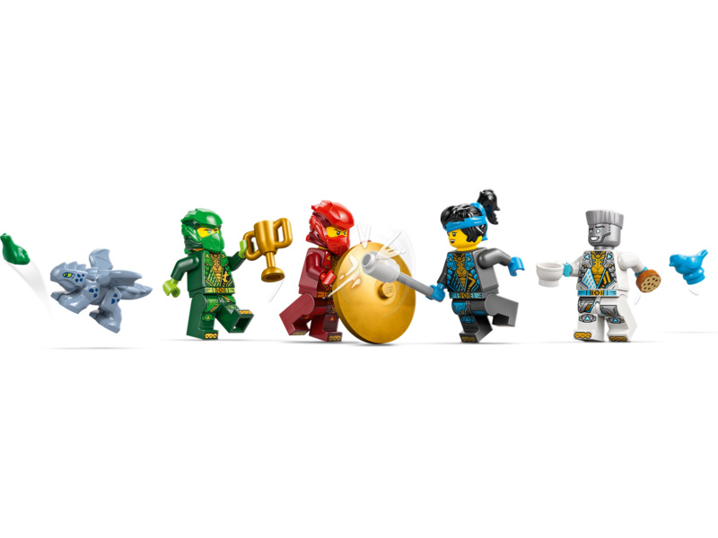 Tato stavebnice LEGO obsahuje 4 minifigurky NINJAGO: Zanea, Nyu, Kaie a Lloyda, a navíc Riyu jako mládě, se kterými si děti připomenou akční nindžovské scény. Minifigurky lze umístit na 2 otáčecí desky pro velkolepé bitvy. Užijte si ještě větší porci zábavy se spoustou doplňků: Nindžovskými zbraněmi včetně 2 mečů a 3 holí, kladivem, ptákem, žábou, trofejí, sušenkou a dopisem.