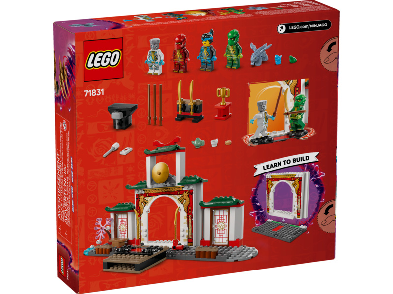 Potěšte malé milovníky nindžů stavebnicí LEGO® NINJAGO® (71831) Chrám nindžů Spinjitzu. S touto stavebnicí si děti od 4 let připomenou dobrodružství ze 3. řady televizního seriálu NINJAGO Dračí povstání. Tato nindžovská stavebnice je ideální pro hraní a obsahuje turnajové pódium NINJAGO, zahradu, čajovnu a prostor pro trénink se zbraněmi.