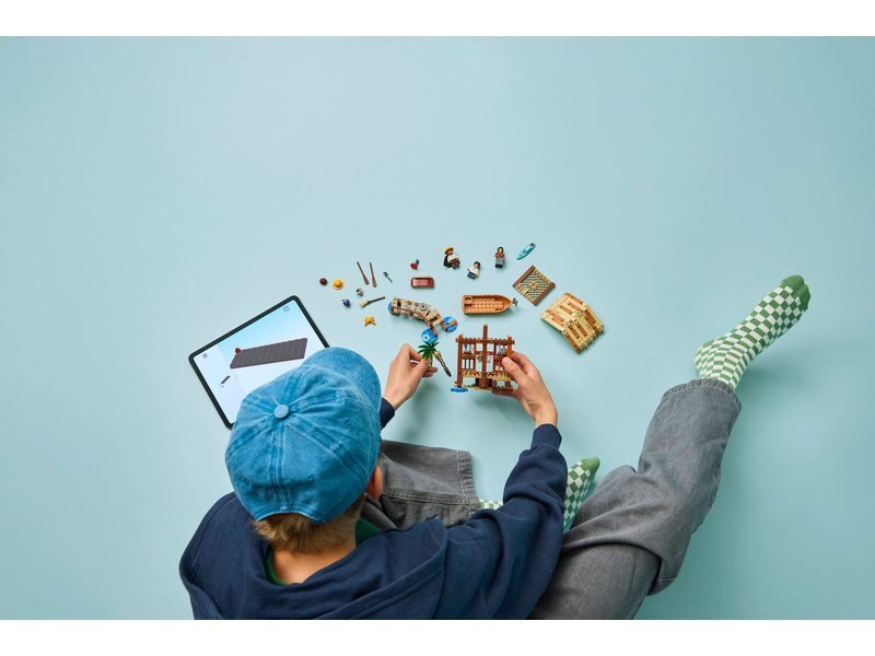 Děti sundají střechu obchodu na pláži a nahlédnou do interiéru plného zábavných detailů. Uvnitř najdou příslušenství pro chod prodejny a zabavení zákazníků. Na zdi visí plakát s hledanou osobou a místo na další plakáty, které najdete v dalších stavebnicích LEGO® ONE PIECE (prodávají se samostatně). Venku najdete pirátskou loď přivázanou k molu. Stavebnice obsahuje minifigurky Luffyho, Shankse a Makino, 3 nezapomenutelných postav ze seriálu od Netflixu. Pro ještě větší porci digitální zábavy stavitelé můžou přibližovat a otáčet modely ve 3D a sledovat postup stavění pomocí intuitivní aplikace LEGO Builder. Stavebnice obsahuje 299 dílků.