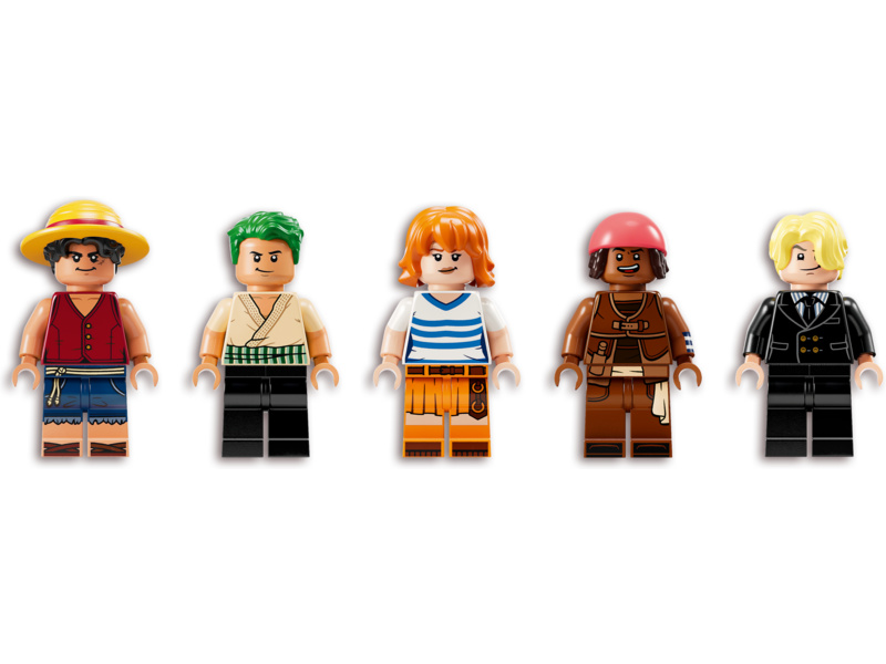 Tato ikonická loď má hned několik vnitřních prostor: kajutu pro posádku, kuchyň, sklad a dílnu na příslušenství. Součástí modelu je 5 minifigurek LEGO ONE PIECE. Luffy sedí na figuře ovce na přídi lodi, pod kterou je dělo, Zoro odpočívá a trénuje na palubě, Nami ovládá kormidlo, zatímco na zadní palubě rostou její oblíbené mandarinky, Usopp šplhá po stěžních a drží stráž a Sanji nese hrnce dolů po schodech do kuchyně. Nechybí 4 plakáty s hledanými osobami. Aplikace LEGO Builder umožňuje dětem přibližovat a otáčet modely ve 3D a sledovat pokrok. Stavebnice obsahuje 1376 dílků.