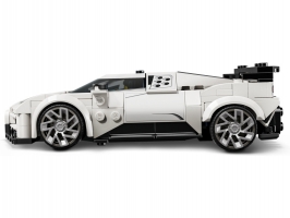 Model LEGO® vozu Bugatti obsahuje 5 kulatých otvorů sání na boku, jedinečné ráfky, světlomety, mřížku chladiče ve tvaru podkovy, převislé zadní křídlo a 4 zadní výfuky. Součástí této stavebnice auta LEGO je také minifigurka řidiče Bugatti, kterou děti usadí za volant a přehrají si s ní akční scénky.