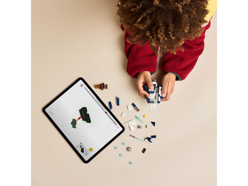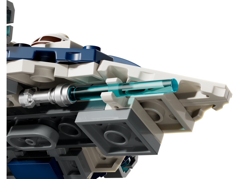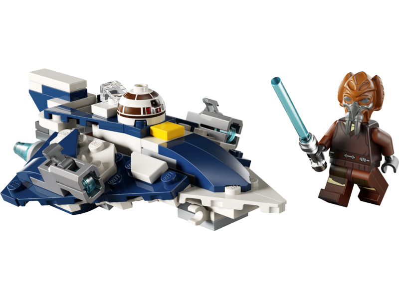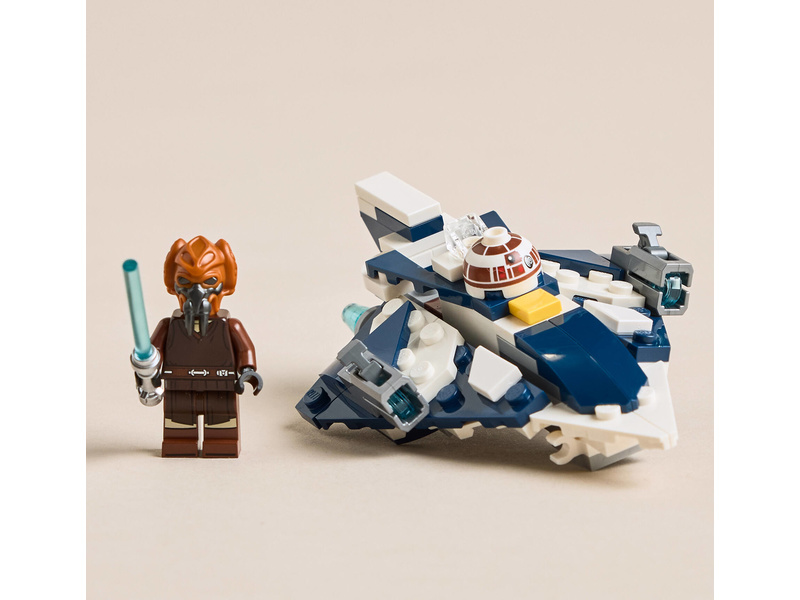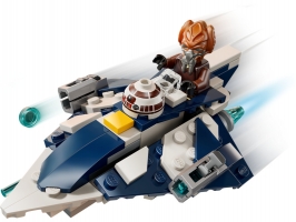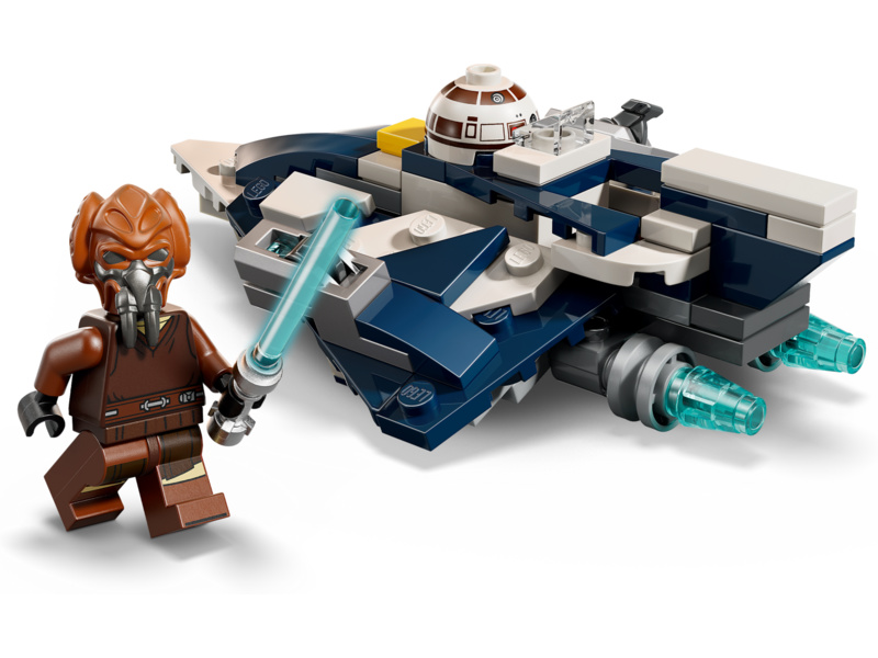 Tato fantastická stavebnice obsahuje také minifigurku LEGO Plo Koona s modrým světelným mečem, který lze připnout na spodní stranu mikrostíhačky. Součástí je také hlava R7-D4, kterou lze připevnit k trupu před kokpitem, aby to vypadalo, že je spolehlivý droid ze Star Wars druhým pilotem.