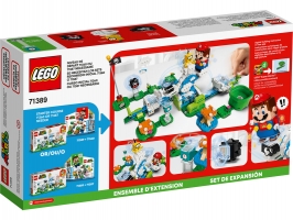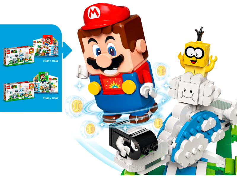 Dopřejte dětem možnost prožívat ve světě LEGO® Super Mario™ nová zábavná dobrodružství díky rozšiřujícímu setu Lakitu a svět obláčků (71389). Obsahuje otočnou obláčkovou plošinu, kterou roztáčí pohyb LEGO® Maria nebo LEGO® Luigiho (figurky nejsou součástí balení) na posuvnících pod ní, čímž se snaží Lakita z plošiny shodit. Sada obsahuje figurky Lakita, Bullet Billa a Fuzzyho, a také akční kostku času s cennými vteřinkami navíc pro dokončení úrovně. (Poznámka: Pro plnohodnotný interaktivní herní zážitek je potřeba vlastnit startovací set 71360 nebo 71387.)