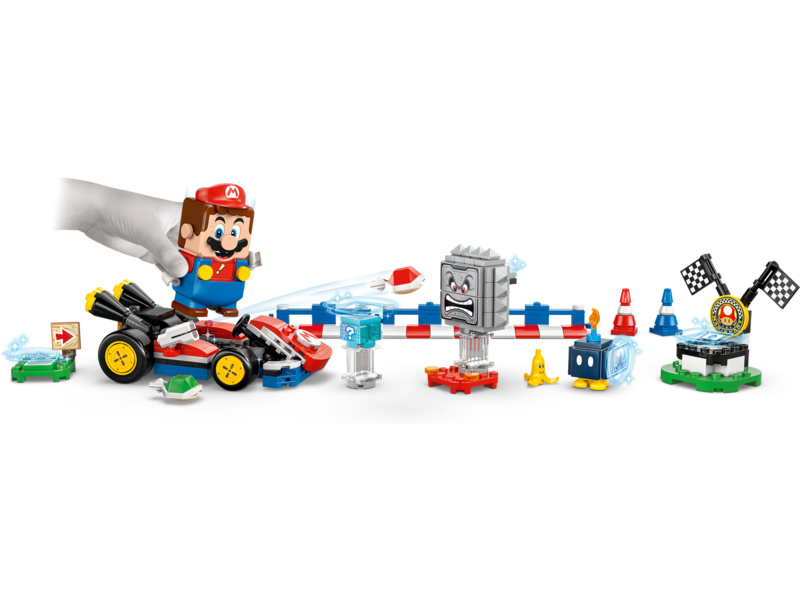 Děti si s touto stavebnicí Mario Kart™ (72043) z kostek vytvoří vlastní závodní dráhu a společně s LEGO® Mariem v motokáře Standard Kart se vydají na interaktivní závody. Fantastická stavebnice LEGO® Super Mario™ pro kluky, holky a gamery od 7 let obsahuje interaktivní figurku LEGO Maria a Standard Kart s funkcí driftování a střílení krunýřů pro zábavné závodění a hraní. Součástí závodní dráhy je také startovní dráha, připojitelné bariéry, dopravní kužely a kruh vítězů. Řiďte Standard Kart s LEGO Mariem a aktivujte zvuky a vizuální efekty Mario Kart, získejte digitální odměny z krabice Item Box, porazte Bob-omba a Thwompa a sledujte, jak LEGO Mario reaguje na zelené a červené destičky LEGO. Objevte celou řadu stavebnic LEGO Super Mario: Mario Kart (prodávají se samostatně) a získejte další vozidla a postavy pro ještě větší porci zábavy. Návod na stavění najdete v krabici nebo v aplikaci LEGO Super Mario. Tato stavebnice obsahuje 278 dílků.