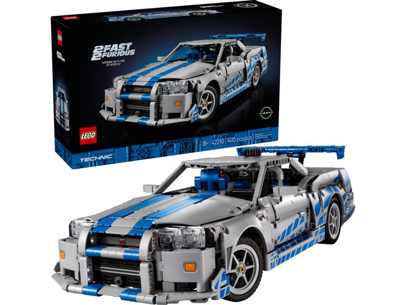 Sešlápněte pedál až na podlahu se stavebnicí auta pro fanoušky filmů Rychle a zběsile. Stavebnice LEGO® Technic 2 Fast 2 Furious (42210) Auto Nissan Skyline GT-R (R34) pro dospělé je nabitá zábavnými funkcemi, které zachycují ducha tohoto kultovního vozu.