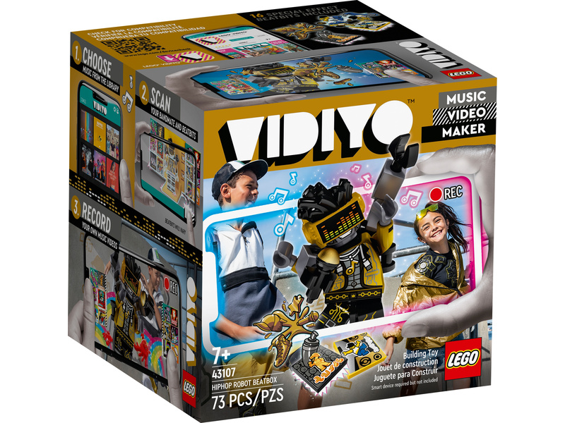 Vstupte do světa videoklipů a hudebních hvězd. Sada LEGO® VIDIYO™ HipHop Robot BeatBox (43107) přináší vzrušující herní zážitky. Stáhněte si aplikaci, naskenujte minifigurku robota a předveďte na pódiu parádní hiphopovou show. Díky BeatBitům získáte přístup k řadě speciálních efektů, výzev a spoustě dalšího obsahu, které mohou děti zakomponovat do vlastních hiphopových videoklipů. Ty pak můžou sdílet s dalšími tvůrci v rámci bezpečné online platformy.