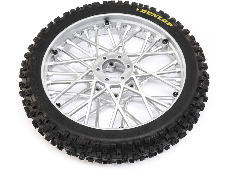 Náhradní díl pro RC model motorky Losi 1:4 Promoto-MX: kolo s pneu Dunlop MX53 přední, disk chrom