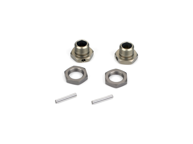 Náhradní díl pro RC modely aut TLR 8ight-X/E 2.0, Nitro Buggy: náboj kola s maticí eloxovaný hliník (2 ks).