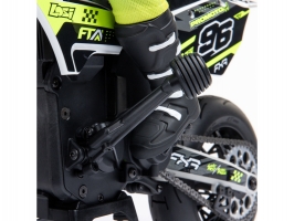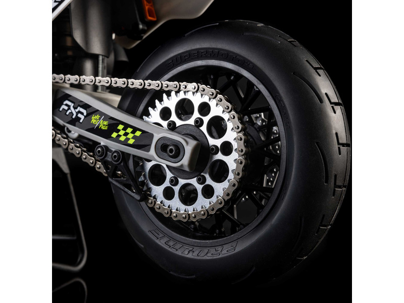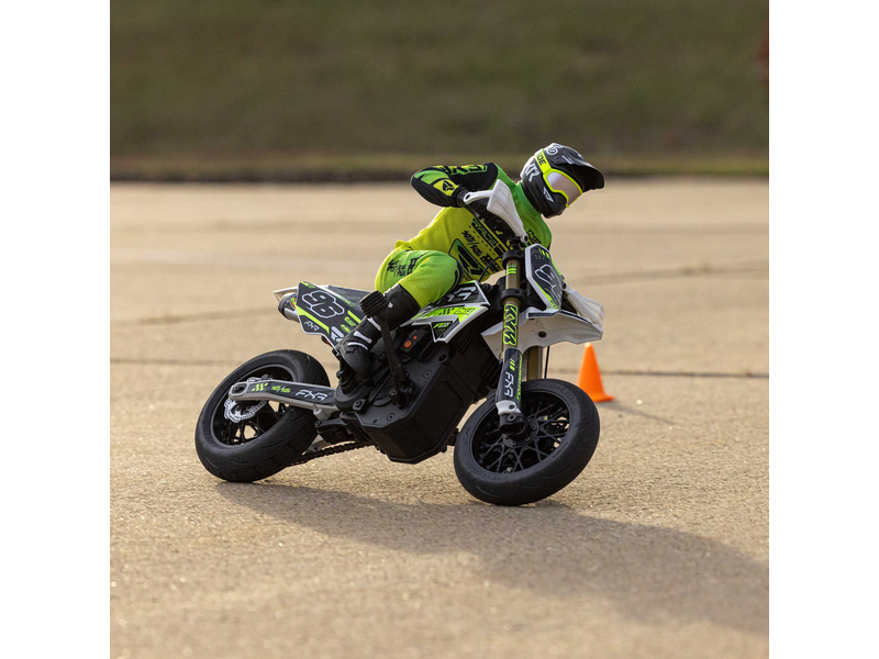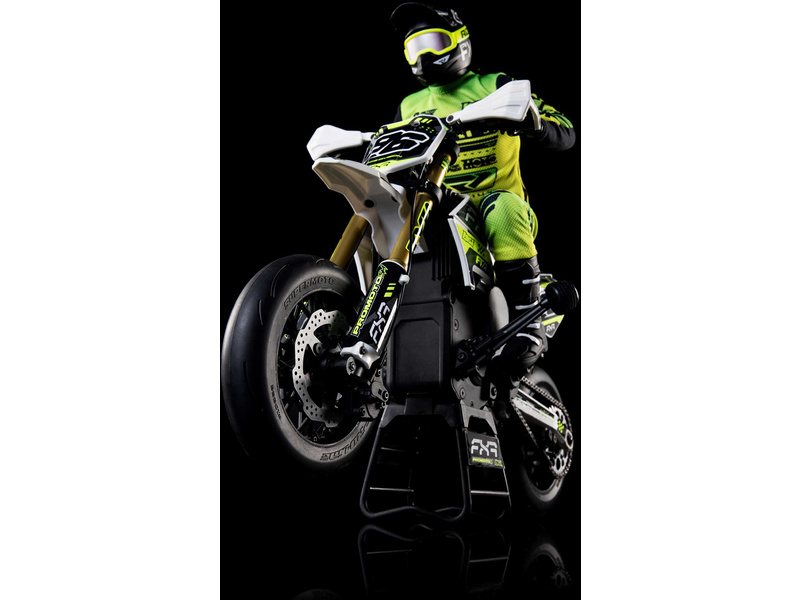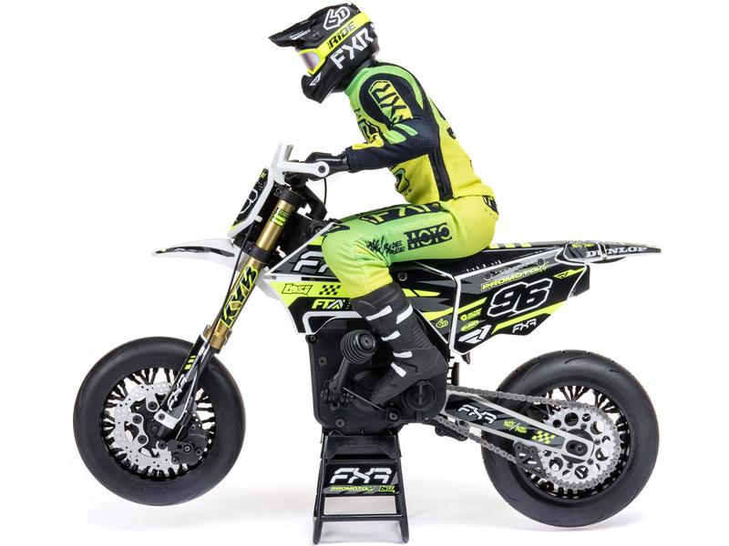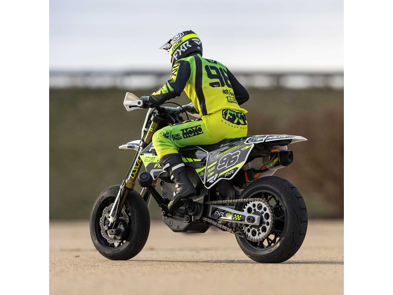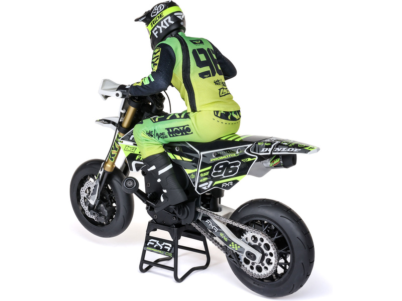 Motorka na dálkové ovládání Promoto-SM vypadá jako skutečný motard. Mezi výrazné maketové detaily patří chrániče rukou, zkrácený přední blatník a oficiálně licencovaná grafika FXR s oblečením jezdce. Maketový vzhled se skloubí s technicky výborně zvládnutým realistickým ovládáním motorky a s vysokým výkonem střídavého motoru. To vše díky jedinečnému spojení mechanické a elektronické technologie, vyvinuté speciálně pro Losi Promoto.