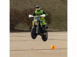RC model motorky Losi Promoto-SM třídy supermoto v měřítku 1:4, která vypadá a funguje stejně jako skutečná. Střídavý pohon udělí rychlost až 65 km/h, vylepšená funkční přední brzda, vysoce realistické zpracování. V balení je vše potřebné včetně akumulátoru a nabíječe.