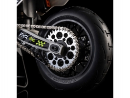 Model Promoto-SM je vybaveno novými silničními pneumatikami Pro-Line Racing OE (Original Equipment) Supermoto. Kromě toho, že doplňují vzhled motocyklu, jsou pneumatiky Supermoto navrženy speciálně pro požadavky na vysokou silniční trakci ve stylu supermoto a dlouhou životnost.