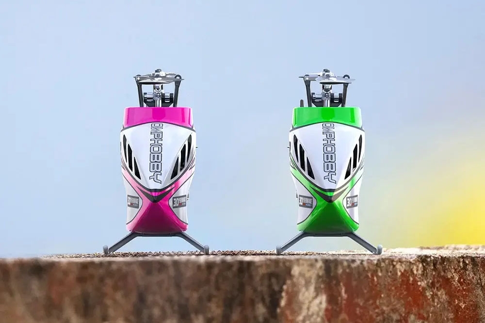 Elektroniku vrtulníku tvoří inteligentní řídící jednotka s novou 3G flybarless řídící jednotkou OFS3+ s integrovaným elektronickým regulátorem otáček s funkcí governoru pro motor nosného rotoru, regulátorem pro motor vyrovnávacího rotoru a vestavěným ELRS přijímačem; a tři 10g digitální serva DS2710 (1,65 kg.cm, 0,08 s/60°) s kovovými převody v plastových krabičkách ovládající CCPM (120°) mixovanou desku cykliky. Pro řízení vrtulníku budete potřebovat aspoň šestikanálovou RC soupravu s miniaturním přijímačem s S.BUS portem (nebo také DSM2/DSMX a nově rovněž s obousměrným CRSF protokolem s telemetrií - podporovány jsou systémy TBS Crossfire, Tracer a ExpressLRS) nebo vysílač s přenosovým systémem ELRS, který spárujete s vestavěným přijímačem. Řídící jednotka také podporuje přenos telemetrie v systémech ELRS, SRXL2 a F.Port. Pro obyčejné poletování nemusí být vysílač ani počítačový (všechny potřebné mixy obstarává řídící jednotka), stačí jen 4 kanály „na kniplech“ a pátý kanál s dvoupolohovým přepínačem pro přepínání režimů řídící jednotky se stabilizací a 3D. Samozřejmě, pro plnohodnotné klasické a 3D létání je třeba počítačový vysílač s nastavitelnými 2-3 letovými režimy s aspoň pětibodovými křivkami kolektivu pro visení a akrobacii a dalším režimem pro autorotaci. Díky rozsáhlým možnostem nastavování řídící jednotky v mobilní aplikaci (včetně detailního nastavování PIDF regulačních smyček) je možné většinu nastavení, které dříve vyžadovaly pokročilou počítačovou RC soupravu, provést na vašem mobilu v aplikaci (pro operační systémy iOS i Android). Můžete, ale nemusíte - řídící jednotka je dodávána přednastavená; její základní parametry je v případě potřeby možné dolaďovat také pomocí programovacího tlačítka a indikačních LED na řídící jednotce, jako tomu bylo u starších verzí řídících jednotek OMPHOBBY.