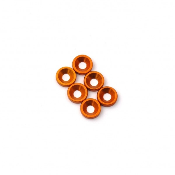 M3 hliníkové podložky zápustných šroubů, oranžové, 6 ks.