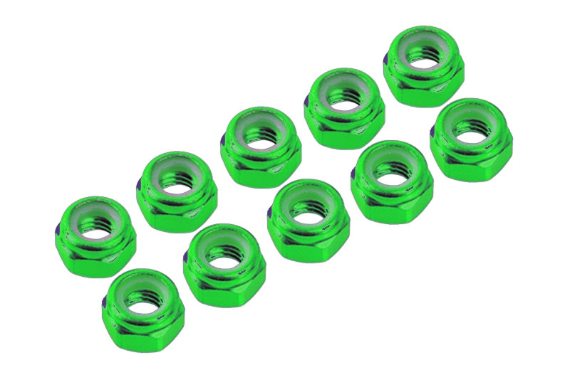 M4/4 mm hliníkové samojistné matičky zelené, 10 ks.