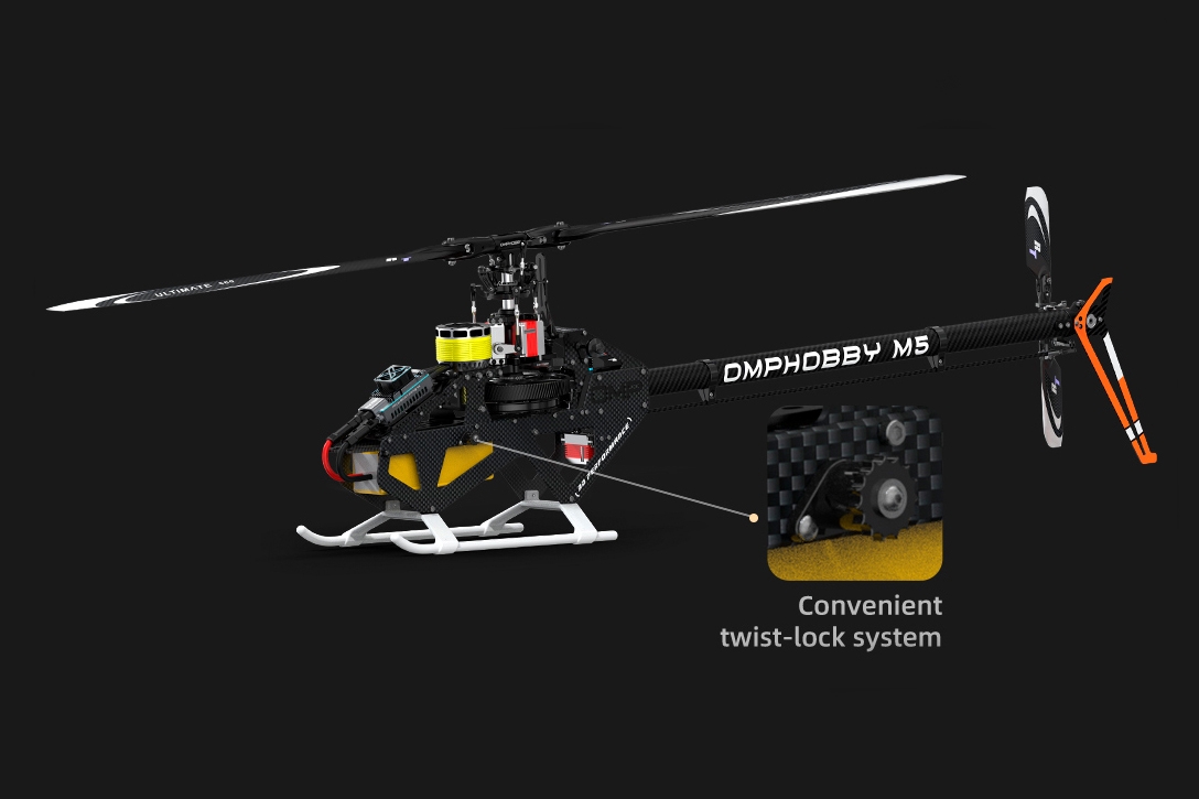 M5 dovoluje instalaci široké škály motorů a elektroniky, takže rovnou z krabice nebo s použitím tuningových dílů snadno vyhoví požadavkům ostřílených 3D pilotů a umožňuje použít jejich nejoblíbenější a důkladně prověřené vybavení.