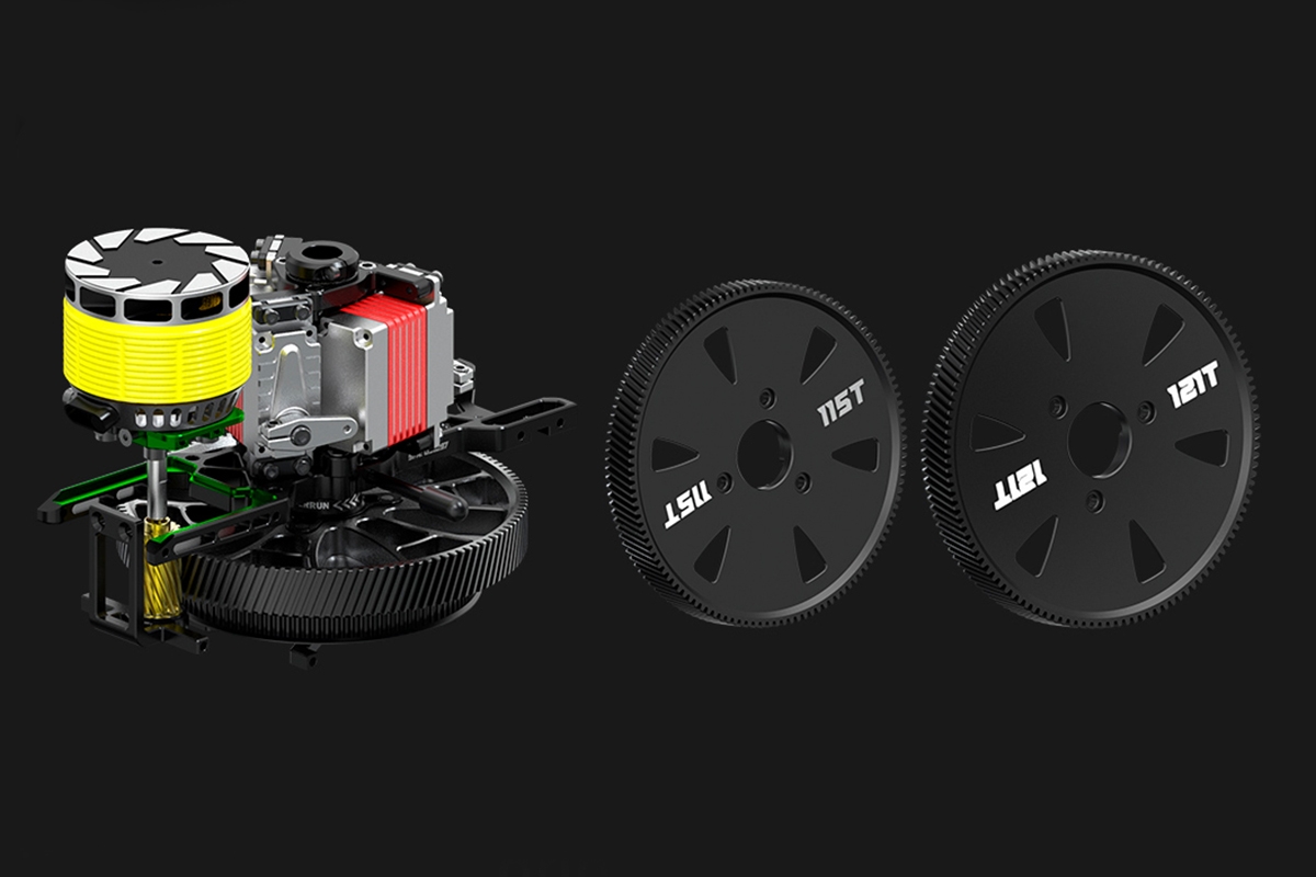 Vhodný motor: Střídavý motor s rotačním pláštěm řady 4520 (průměr statoru 45 mm) s cca 1100KV pro 6S, 850KV pro 8S, 550KV pro 12S LiPo. Např. Sunnysky M4520R 1120/840/550KV.