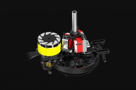 Vhodný motor: Střídavý motor s rotačním pláštěm řady 4520 (průměr statoru 45 mm) s cca 1100KV pro 6S, 850KV pro 8S, 550KV pro 12S LiPo. Např. Sunnysky M4520R 1120/840/550KV.