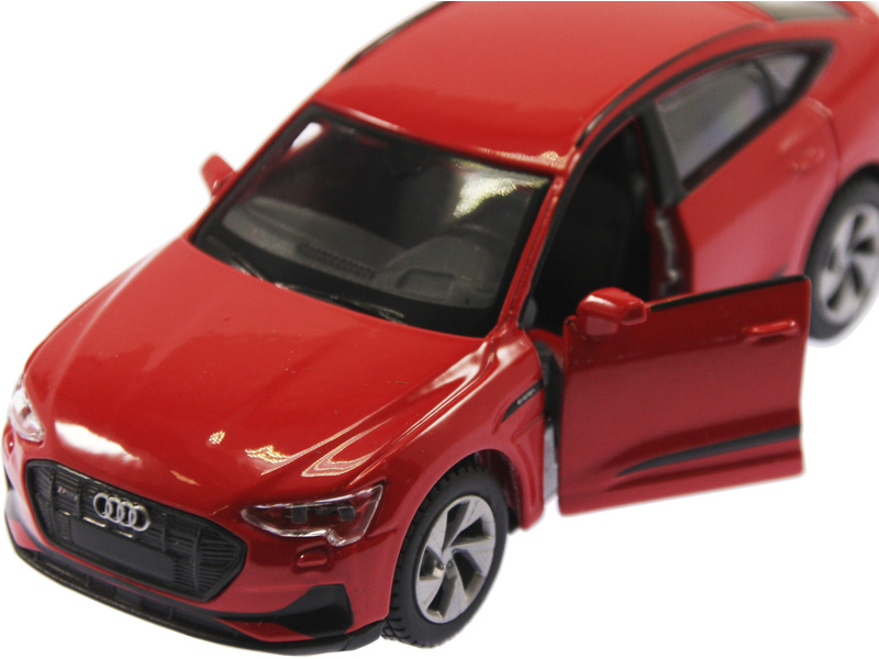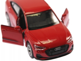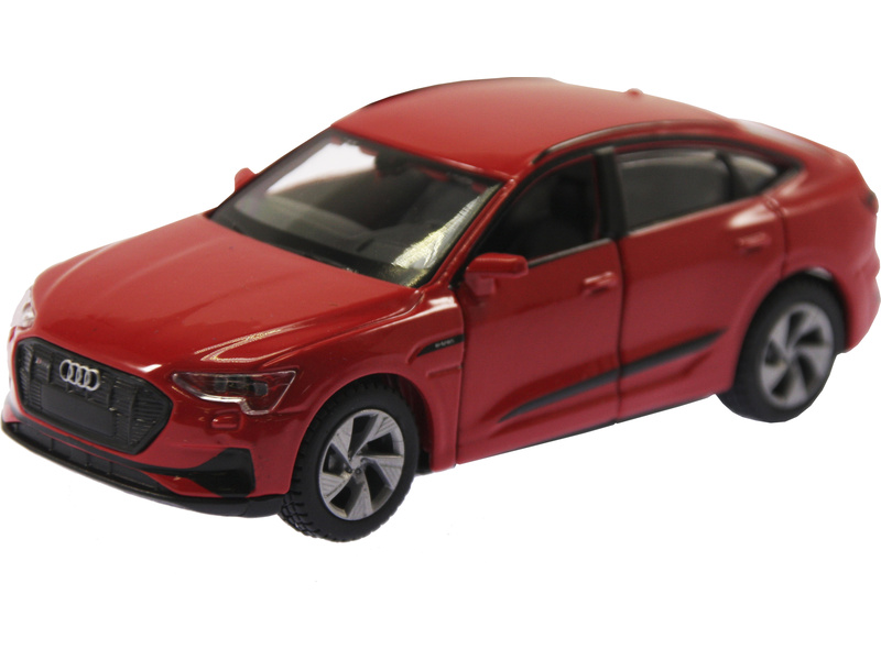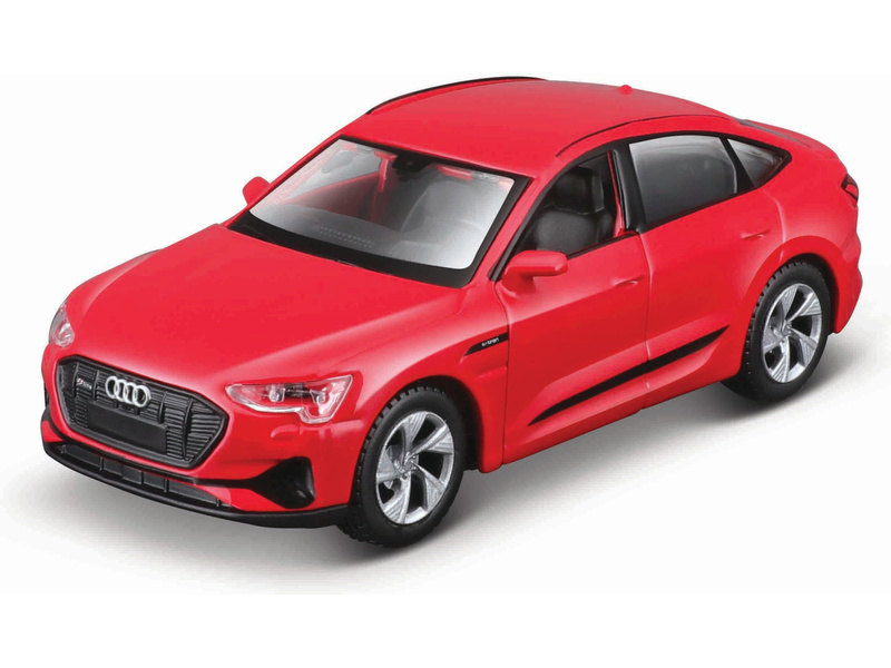 Kovový model Maisto 21835 Audi e-tron Sportback v měřítku 1:46 nejen pro sběratele. Detailní provedení, přívětivá cena, barva červená, délka přibližně 11 cm. Model má otvíratelné dveře a obsahuje natahovací mechanismus.