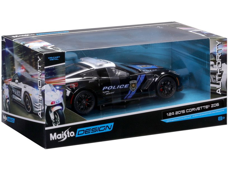 Kovový model auta 1:24 Maisto 32516 Corvette Z06 2015 Authority nejen pro sběratele. Model je v detailním provedení a má otevíratelné dveře. Barva modelu je černá a je přibližně 19 cm velký.