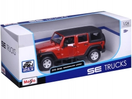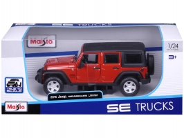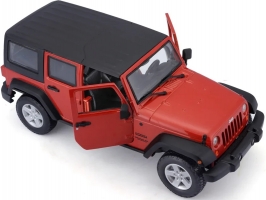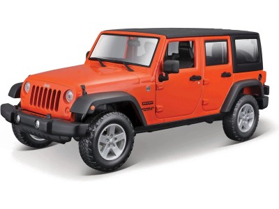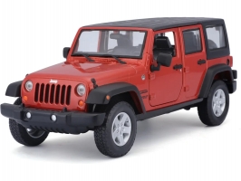 Kovový model auta 1:24 Maisto 31268O Jeep Wrangler Unlimited 2015 nejen pro sběratele. Model je v detailním provedení a má otevíratelné dveře. Barva modelu je oranžová a je přibližně 17 cm velký.