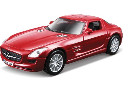 Kovový model Maisto 09102 Mercedes-Benz SLS AMG v měřítku 1:40 nejen pro sběratele. Detailní provedení, přívětivá cena, barva červená, délka přibližně 11 cm. Model má otvíratelné dveře a obsahuje natahovací mechanismus.