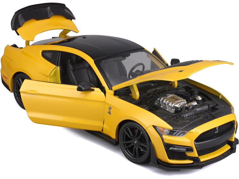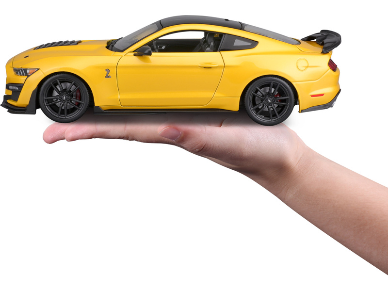 Kovový model auta Maisto 31452Y Mustang Shelby GT500 2020 žlutý, v měřítku 1:18 nejen pro sběratele. Model je v detailním provedení na plastovém podstavci. Barva modelu je žlutá a délka je přibližně 27cm.