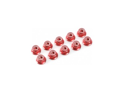 Samojistná hliníková matice M5 s přírubou červeně eloxovaná. Balení obsahuje 10 ks.