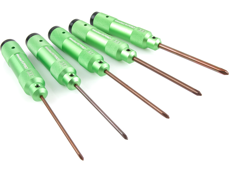 Sada kvalitních CNC křížových šroubováků Phillips Medial Pro o velikosti 3.0 (#0), 3.5, 4.0 (#1), 5.0 (#2) a 5.8 mm má hliníkovou rukojeť o průměru 21 mm s gumovou opěrkou a dřík o délce 83 mm. Atraktivní balení v plastové krabičce.
