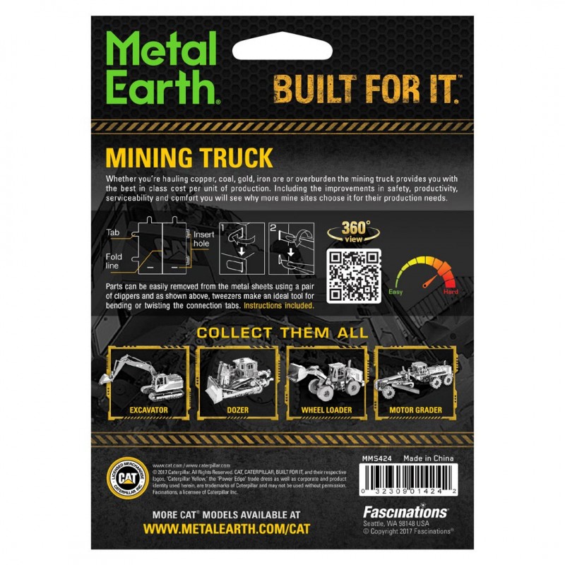 Luxusní 3D ocelová stavebnice CAT důlní vozidlo. 3 kovové destičky (11 x 11 cm), počet dílů: 120.