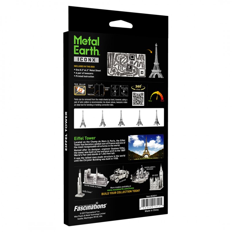 Luxusní 3D ocelová stavebnice Eiffelova věž ICX011. 1 kovovÁ destičkA (10 x 20 cm), počet dílů: 42.