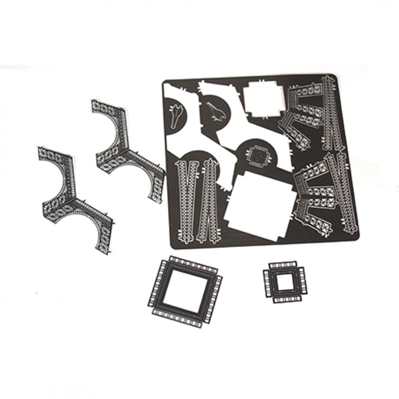 Luxusní 3D ocelová stavebnice Eiffelova věž MMS016. 1 kovová destička (11 x 11 cm), počet dílů: 13.