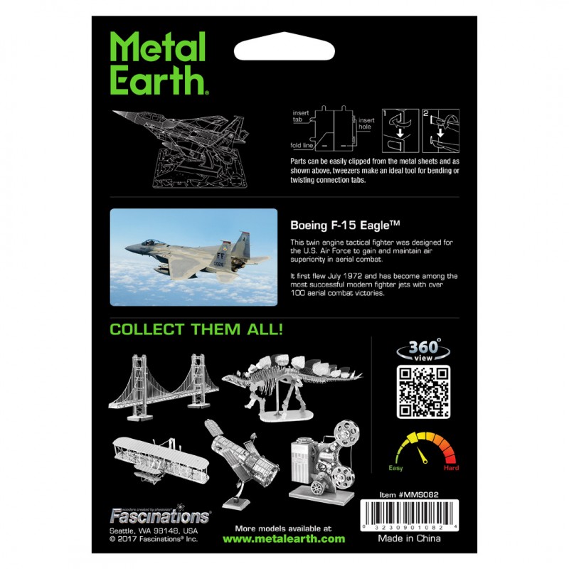 Metal Earth Luxusní ocelová stavebnice F-15 Eagle MMS082, 1 kovová destička (11 x 11 cm).