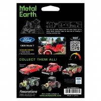 Luxusní 3D ocelová stavebnice Ford - 1908 Model T - červený. 2 kovové destičky (11 x 11 cm), počet dílů: 59.