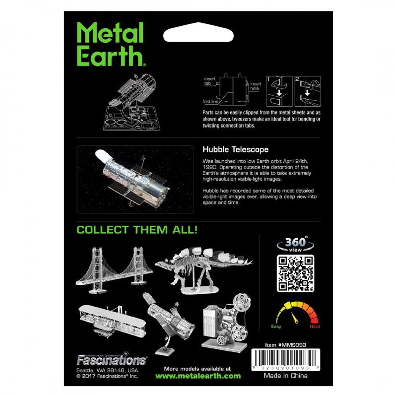Metal Earth Luxusní ocelová stavebnice Hubbleův teleskop MMS093, 1 kovová destička (11 x 11 cm).