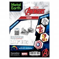 Luxusní 3D ocelová stavebnice Marvel Avenger Thorovo kladivo Mjolnir. 2 kovové destičky (11 x 11 cm), počet dílů: 44.