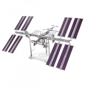 Luxusní 3d ocelová stavebnice Mezinárodní vesmírná stanice Premium Series (ISS) ICX140. 3 kovové destičky (10 x 20 cm), počet dílů: 209.