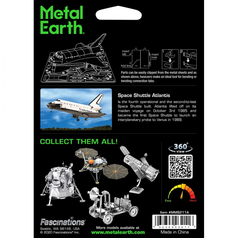Luxusní 3D ocelová stavebnice Raketoplán Atlantis (barevný) MMS211A . 2 barevné kovové destičky (11 x 11 cm), počet dílů: 71.