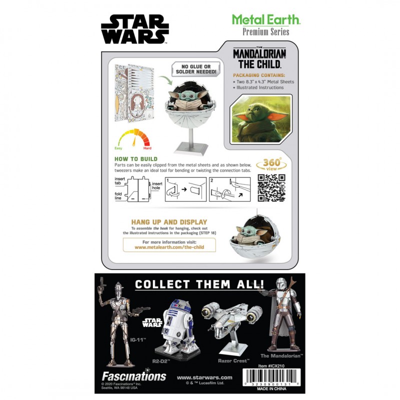 Luxusní 3D ocelová stavebnice Prémiová řada Star Wars Mandalorian - The Child ICX210. 2 kovové destičky ICONX (10 x 20 cm), počet dílů: 72.