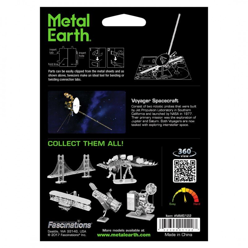 Luxusní 3D ocelová stavebnice Vesmírná loď Voyager MMS122. 1 kovová destička (11 x 11 cm), počet dílů: 56.