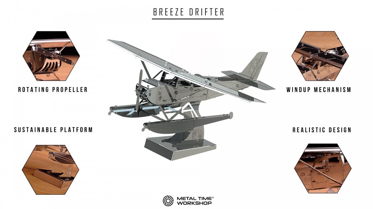 Odhalte kouzlo letectví a technického umění s naší stavebnicí Breeze Drifter! Tento vysoce kvalitní model je nejen dokonalou reprodukcí historického hydroplánu, ale také okouzlujícím spojením precizního inženýrství a estetické krásy. Postavit si vlastní Breeze Drifter znamená prožít nejen fascinující cestu vznikem létajícího stroje, ale i užít si každý moment sestavování jeho dokonalých kovových dílů.