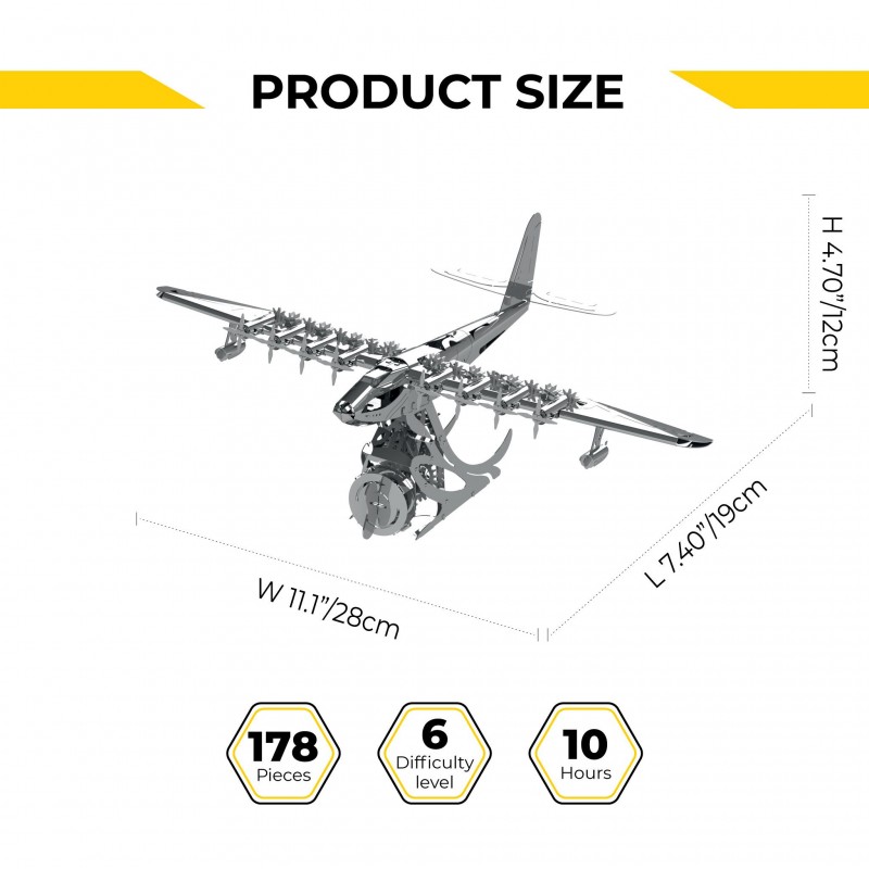 Objevte fascinující svět precizního strojírenství s naší luxusní ocelovou stavebnicí Celestial Hercules. Tento mechanický zázrak, inspirovaný legendární "Smrkovou husou", představuje vrchol konstrukčního umění a technologické dokonalosti. Společnost Metal Time s hrdostí uvádí model, který vzdává hold jednomu z největších technických divů letecké historie – Hughes H-4 Hercules, známému také jako Spruce Goose.