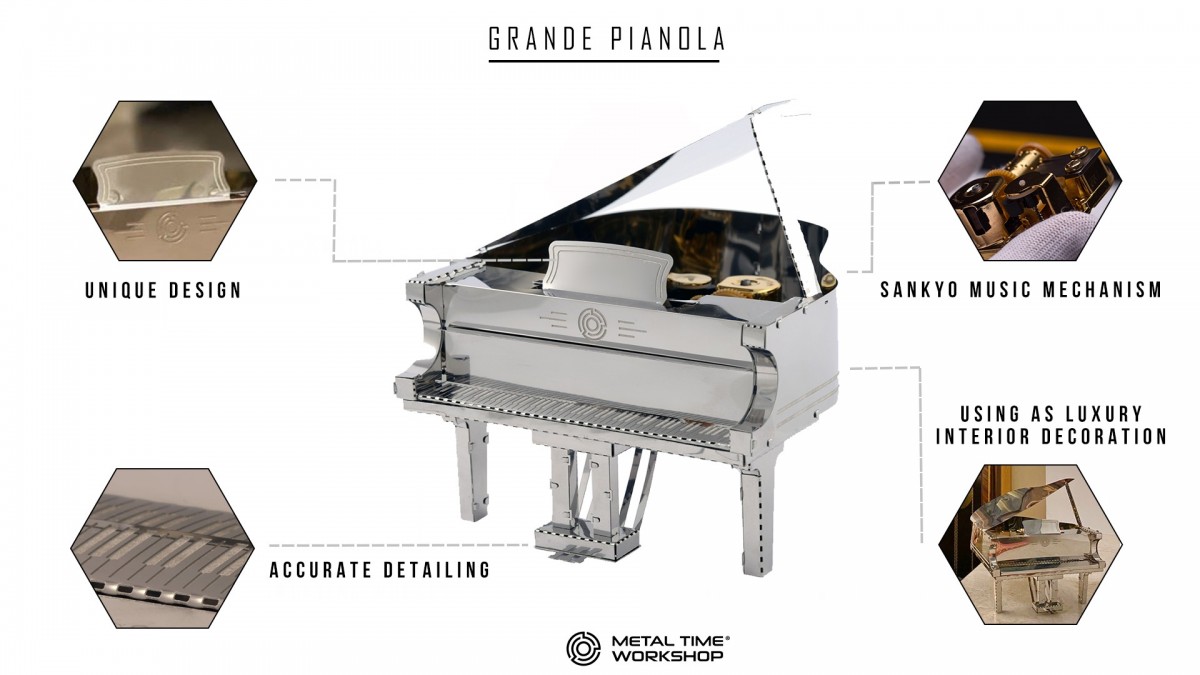 2. Vysoká kvalita materiálů: Vyrobena z prvotřídní nerezové oceli s precizním laserovým řezáním dílů, Grande Pianola slibuje dlouhou životnost a odolnost.