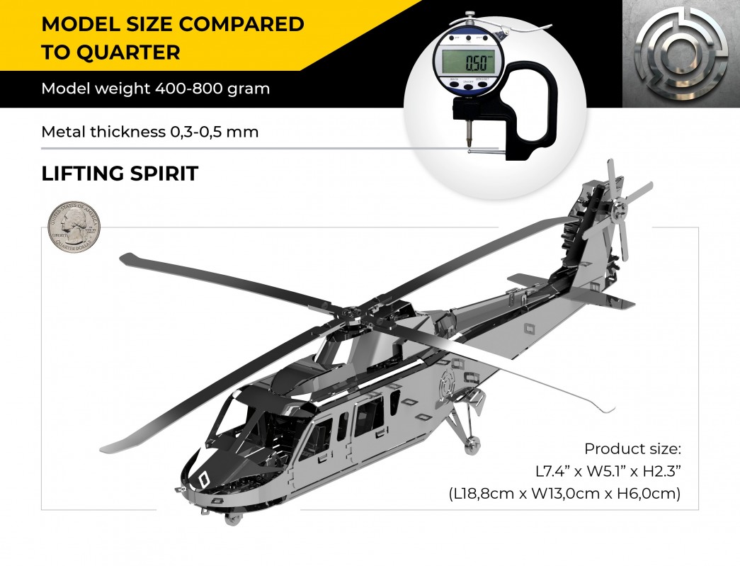 Objevte vzrušení z konstrukce a technické dokonalosti s naší luxusní ocelovou stavebnicí Lifting Spirit. Tento model je poctou legendárnímu inženýrovi Igoru Sikorskému, jehož inovace v oblasti letectví zásadně ovlivnily moderní vrtulníky. Vytvořte si vlastní model ikonického UH-60 Black Hawk, helikoptéry, která se zapsala do dějin svou spolehlivostí a multifunkčností.