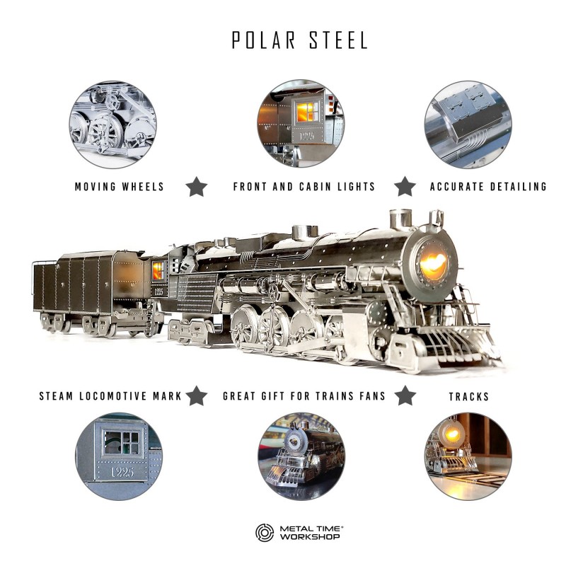 Model Polar Steel byl vytvořen inženýry a designéry společnosti Metal Time. Jejich cílem bylo ztělesnit kouzlo železniční techniky a romantiky cestování. Díky preciznímu zpracování, použitému materiálu a barevným akcentům získal tento model jedinečný vzhled, který není spojen s klasickým černým uhlím, ale skutečným báječným rychlíkem.