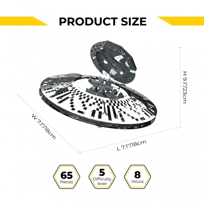 Vyrobená z vysoce kvalitní nerezové oceli, tato stavebnice je výsledkem pečlivé práce inženýrů a designérů, kteří se nechali inspirovat nejen historií UFO, ale také populárními kulturálními fenomény, které formovaly naši představu o mimozemském životě. Model kombinuje sofistikované umělecké prvky, barevné detaily a složité mechanismy, které nadchnou nejen fanoušky sci-fi, ale také ty, kteří si cení precizní inženýrské práce.