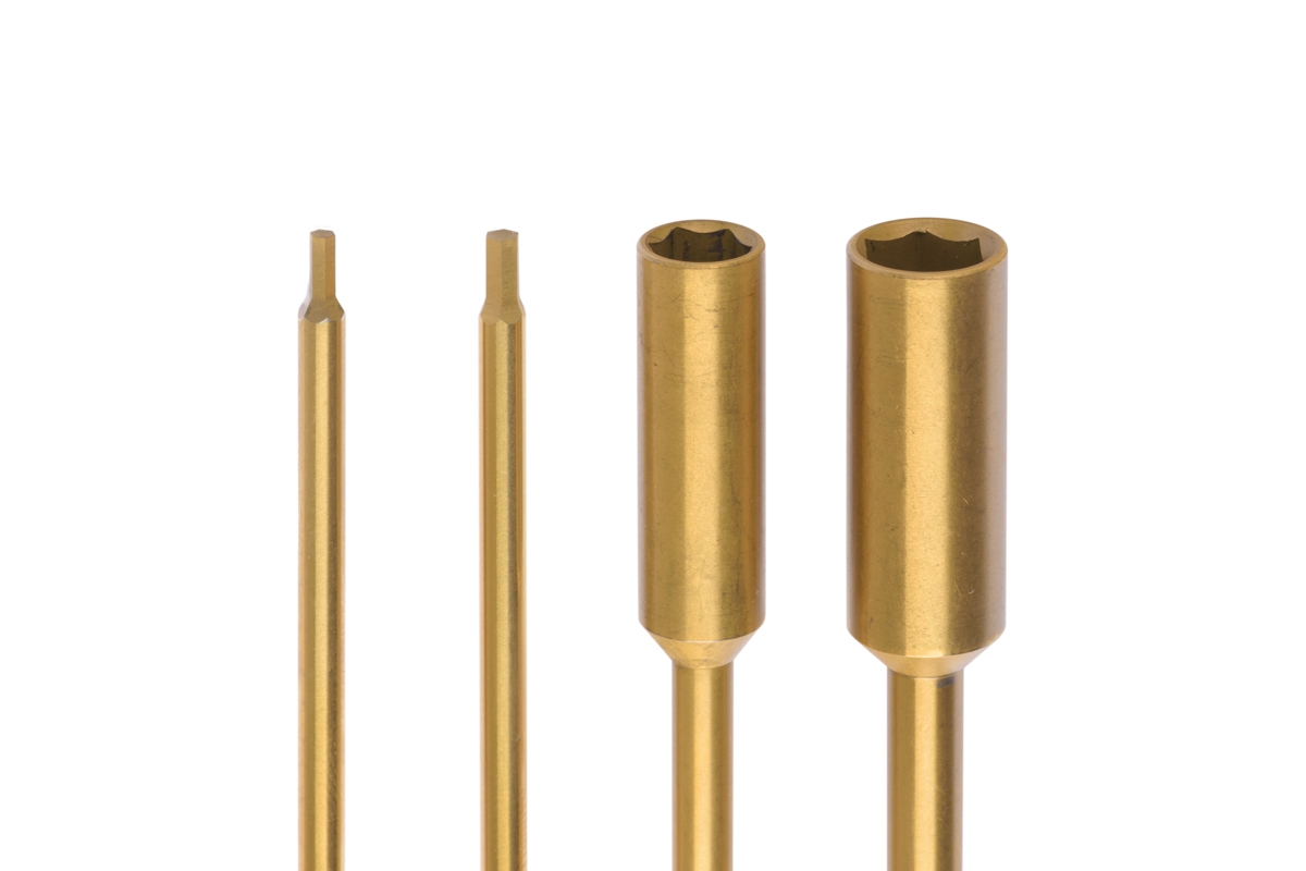 Sada 4 bitů pro elektrické šroubováky, vyrobených z tvrdé oceli s titanovou povrchovou úpravou. Součástí je 1,5mm, 2,0mm, 5,5mm a 7,0mm bit pro 6,35mm šestihranný adaptér.