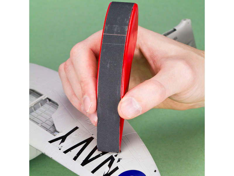 Modelcraft brousítko s pružinou pro pásek o šířce 20 mm. V balení je pásek střední zrnitosti. Pružina napnutá vzadu udržuje pás na místě pro snadné broušení. Délka 135 mm, šířka 20/35 mm, hmotnost 39 g, výška 25 mm. Vhodné pro plošné i tvarové broušení.