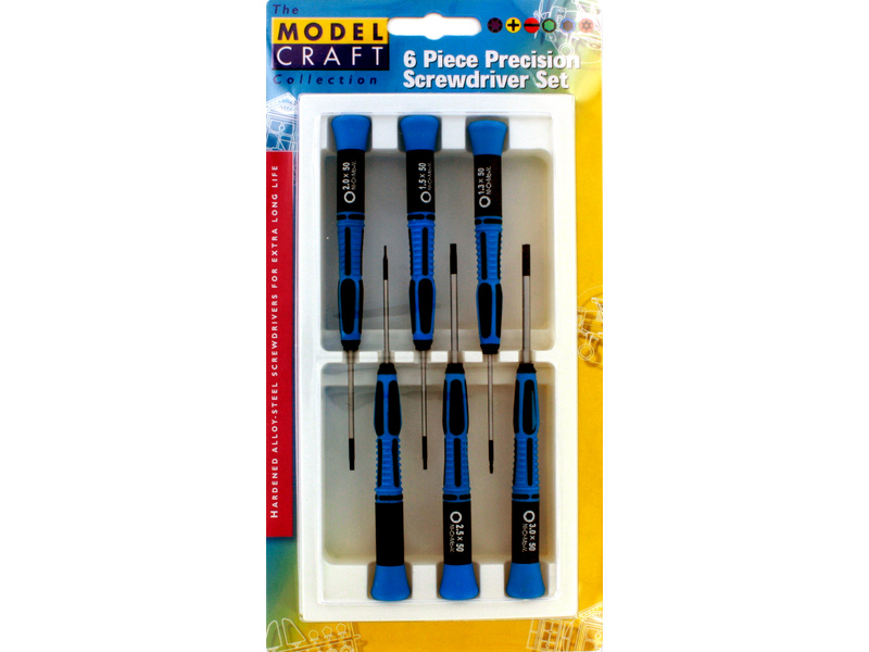 Modelcraft imbus šroubováky (sada 6ks) z nerezové oceli s pracovní částí s černou povrchovou úpravou z chromové oceli. Dříky mají stejný průměr jak rozměr šroubováku, délka dříku je 50mm. Rozměry: 0.9mm, 1.3mm, 1.5mm, 2.0mm, 2.5mm, 3.0mm. Plastové ručky s otočnou hlavicí o délce 100 mm a průměru 12 mm.
