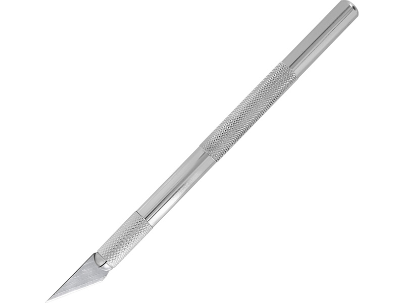 Modelcraft modelářský nůž malý s držákem čepelí #1 a čepelí #11. Rukojeť z hliníku o délce 125mm. Ideální pro práci v úzkých prostorách při práci se dřevem, plastem či papírem. Celková délka 143mm, průměr 8mm, hmotnost 15g.