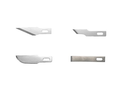 Modelcraft náhradní čepele (2x#11, #10, #16, #17), držák #1. 2 x # 11 Klasické ostří pro jemné řezání. 1 x # 10 Univerzální zakřivená čepel pro ořezávání. 1 x # 16 Čepel pro detailní řezy bez trhání. 1 x # 17 Sekací čepel pro odstraňování tenkých vrstev. Výběr čepelí pro všechny detailní a přesné práce.